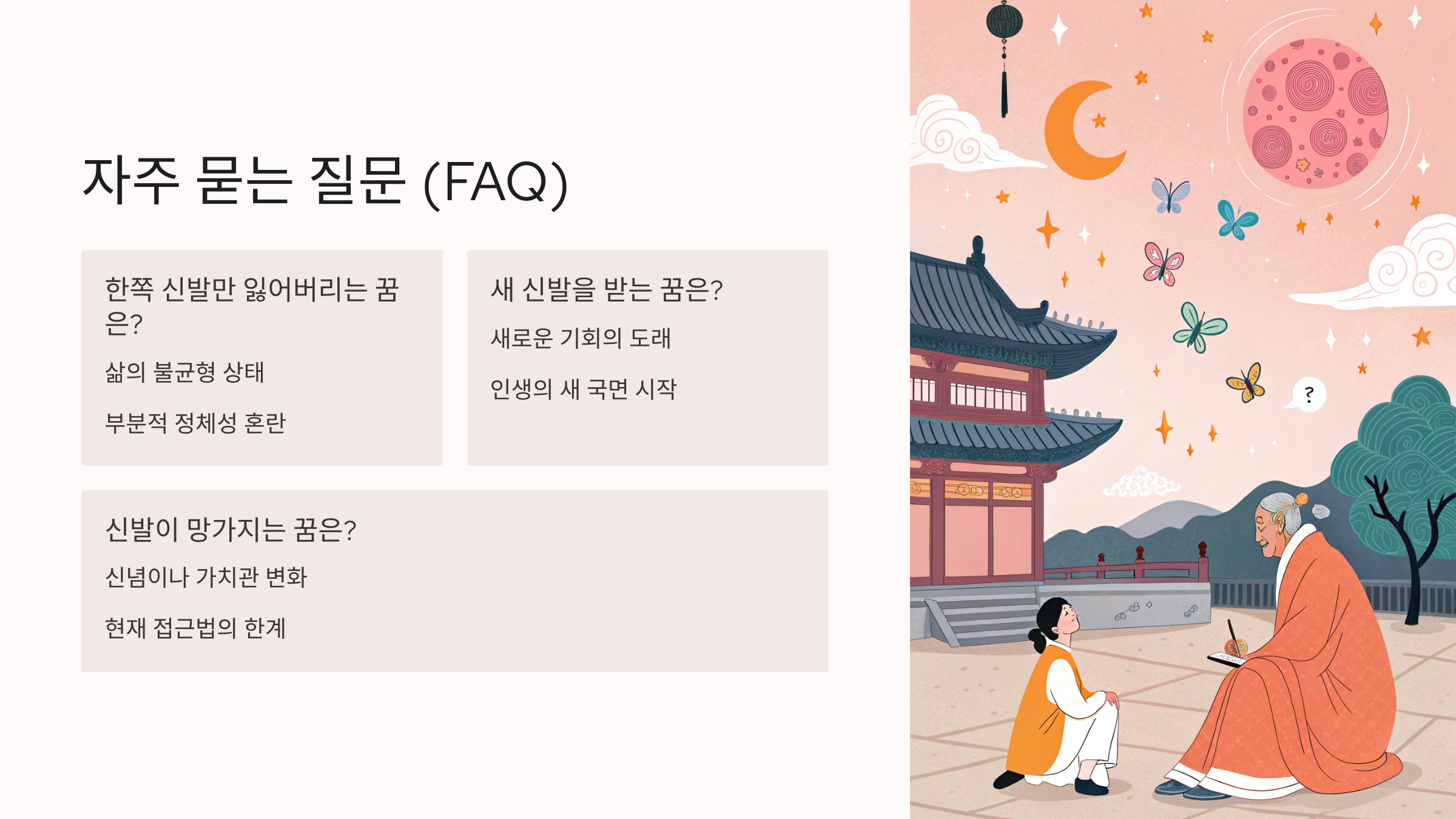이제 마지막으로, 신발 꿈에 대해 사람들이 가장 자주 묻는 질문들을 FAQ 형식으로 정리해줄게요!📚
