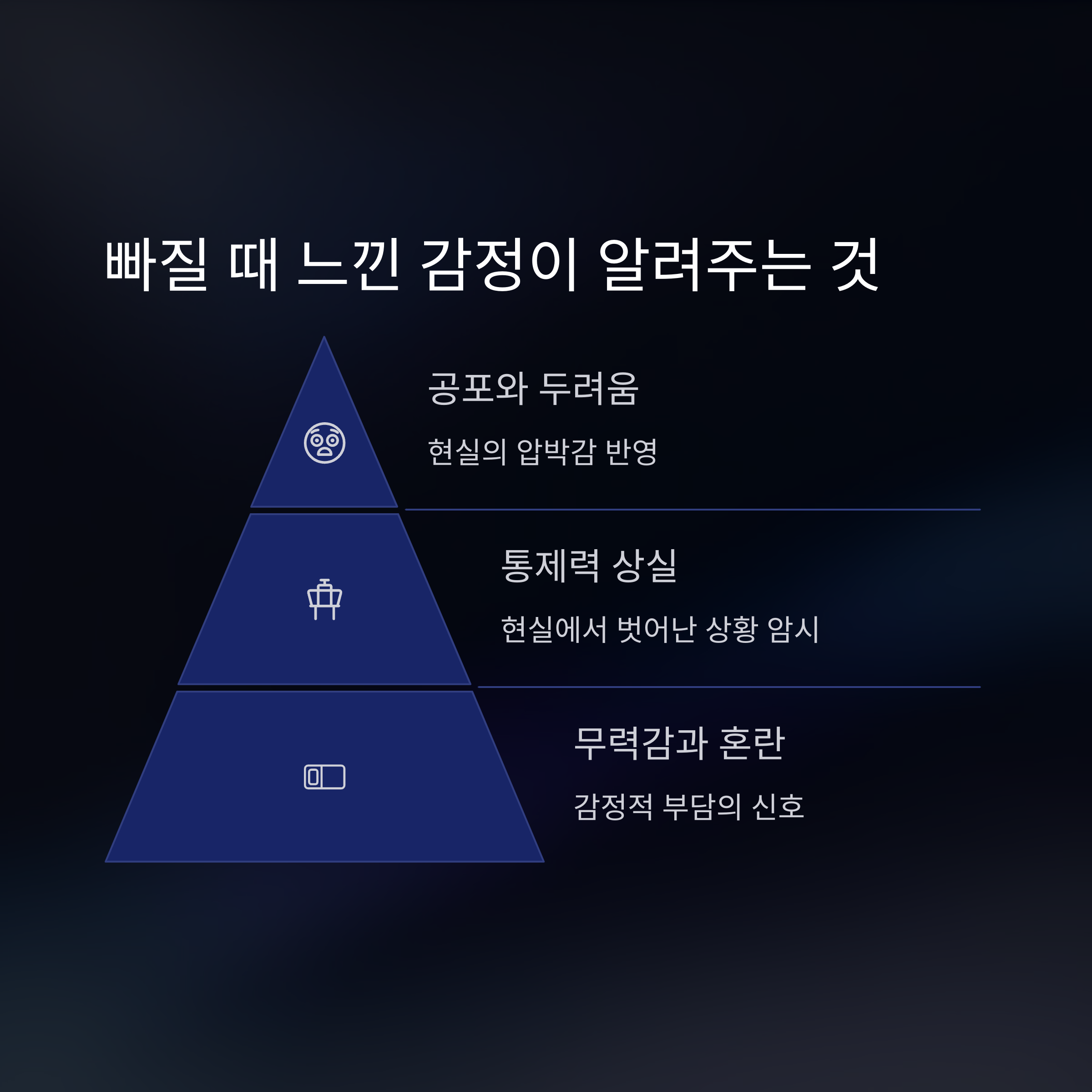 꿈속에서 빠지면서 두려움, 공포, 무력감을 느꼈다면, 현재 삶에서 압박감을 받고 있다는 신호예요. 특히 감정적으로 숨 막히는 인간관계, 일, 가족 문제가 있을 수 있어요.