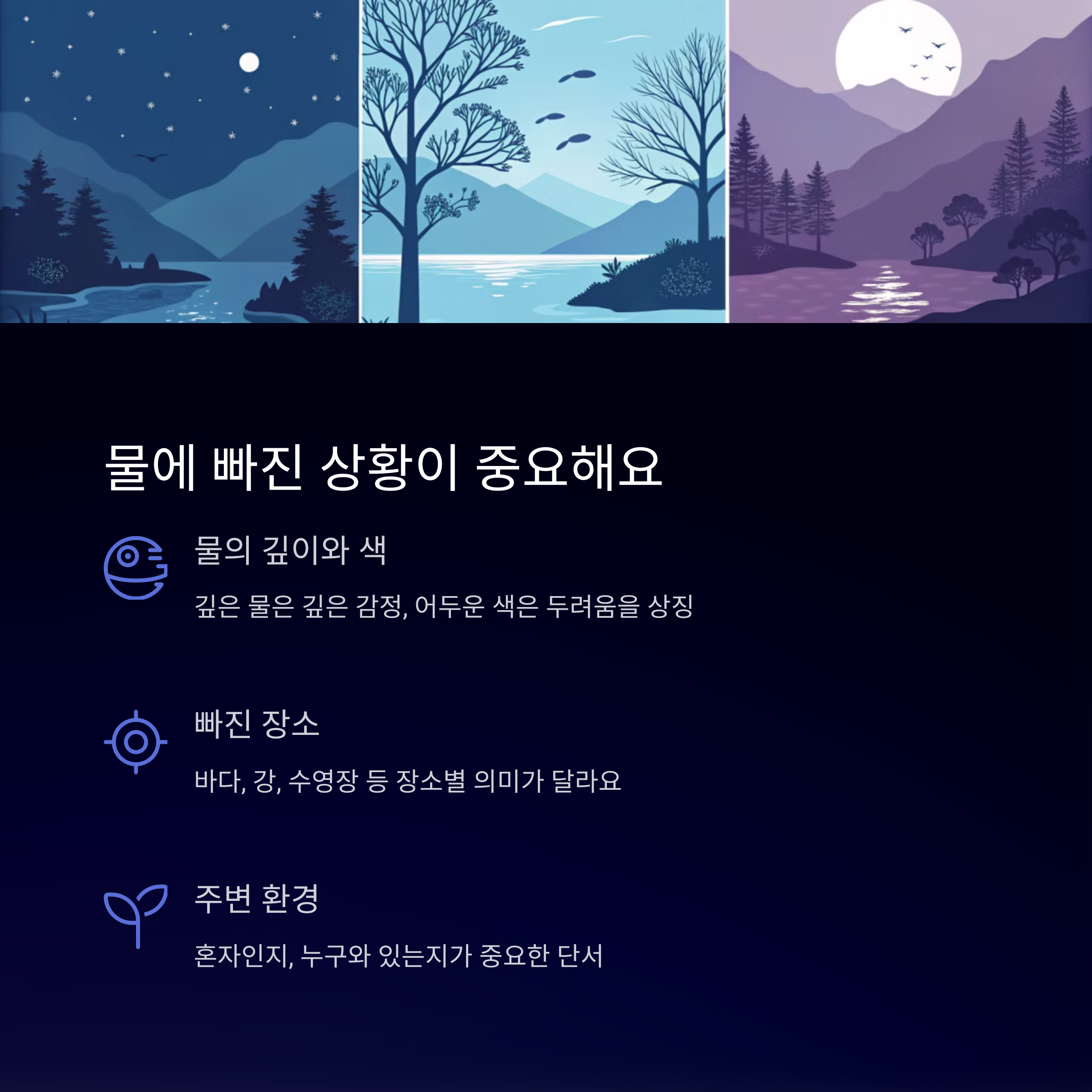 물에 빠지고 나서 내가 어떤 행동을 했는지가 중요한 해석 포인트예요. ‘어떻게’ 행동했는지가 곧 내 현실을 반영해요.