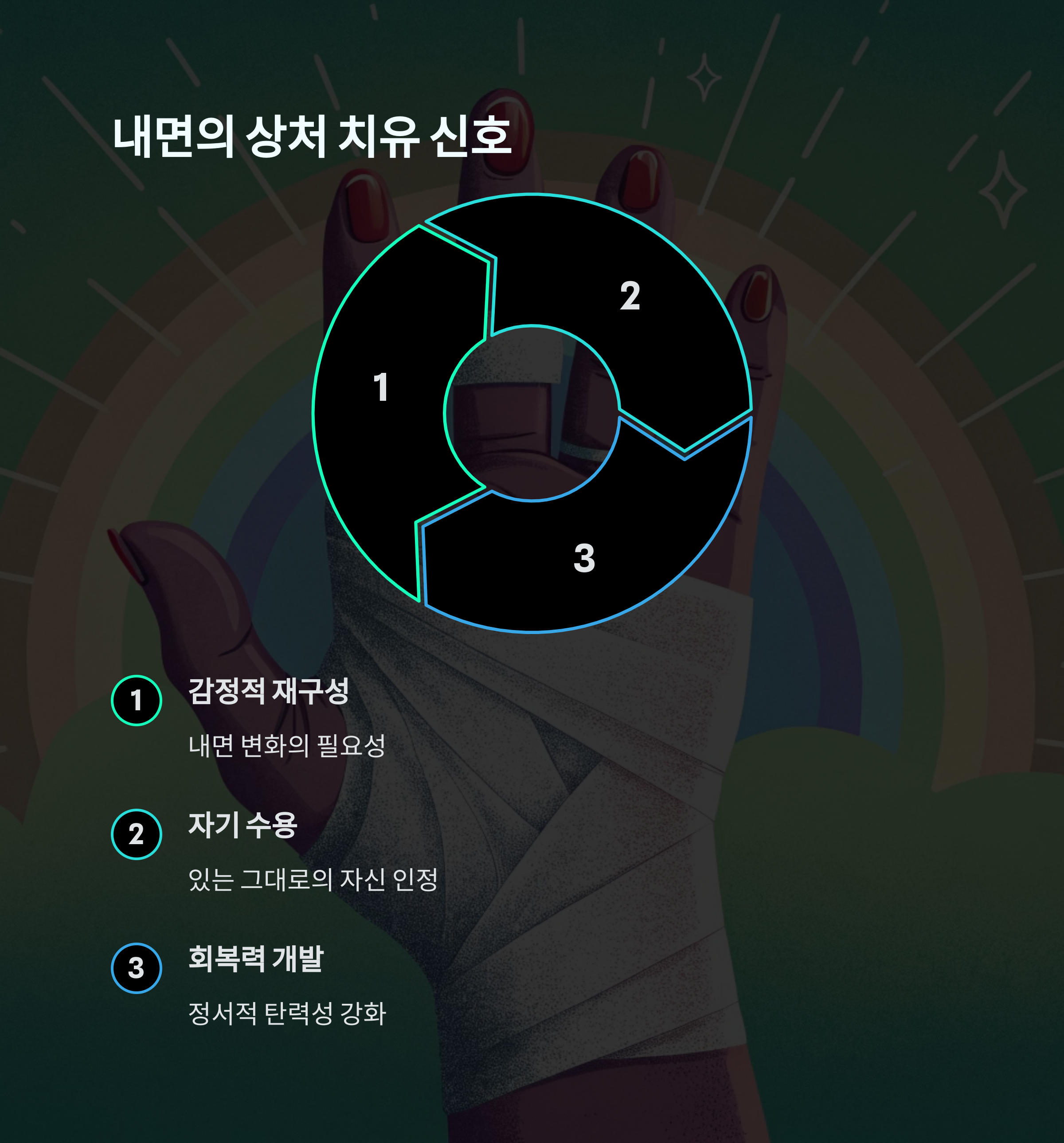 상처는 드러날수록 더 잘 회복돼요. 감정을 털어놓을 상대가 없다면, 내 일기장이라도 괜찮아요. 무엇보다 중요한 건, 지금 **내 감정에 내가 먼저 반응해 주는 것**이에요.
