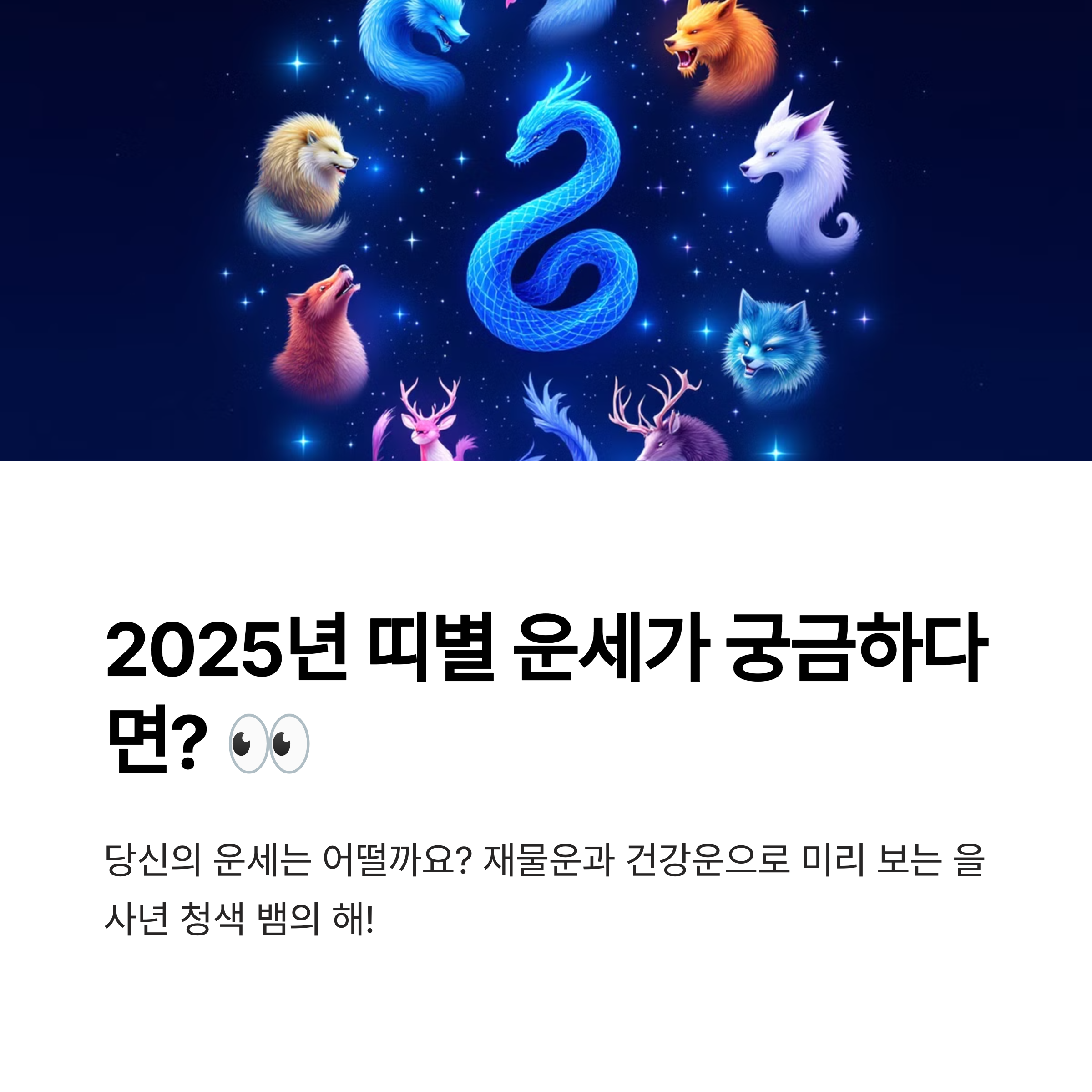 2025년의 띠별 운세를 잘 활용하면 **금전 관리, 건강 관리, 인간관계, 커리어 선택** 에 큰 도움이 될 수 있어요.