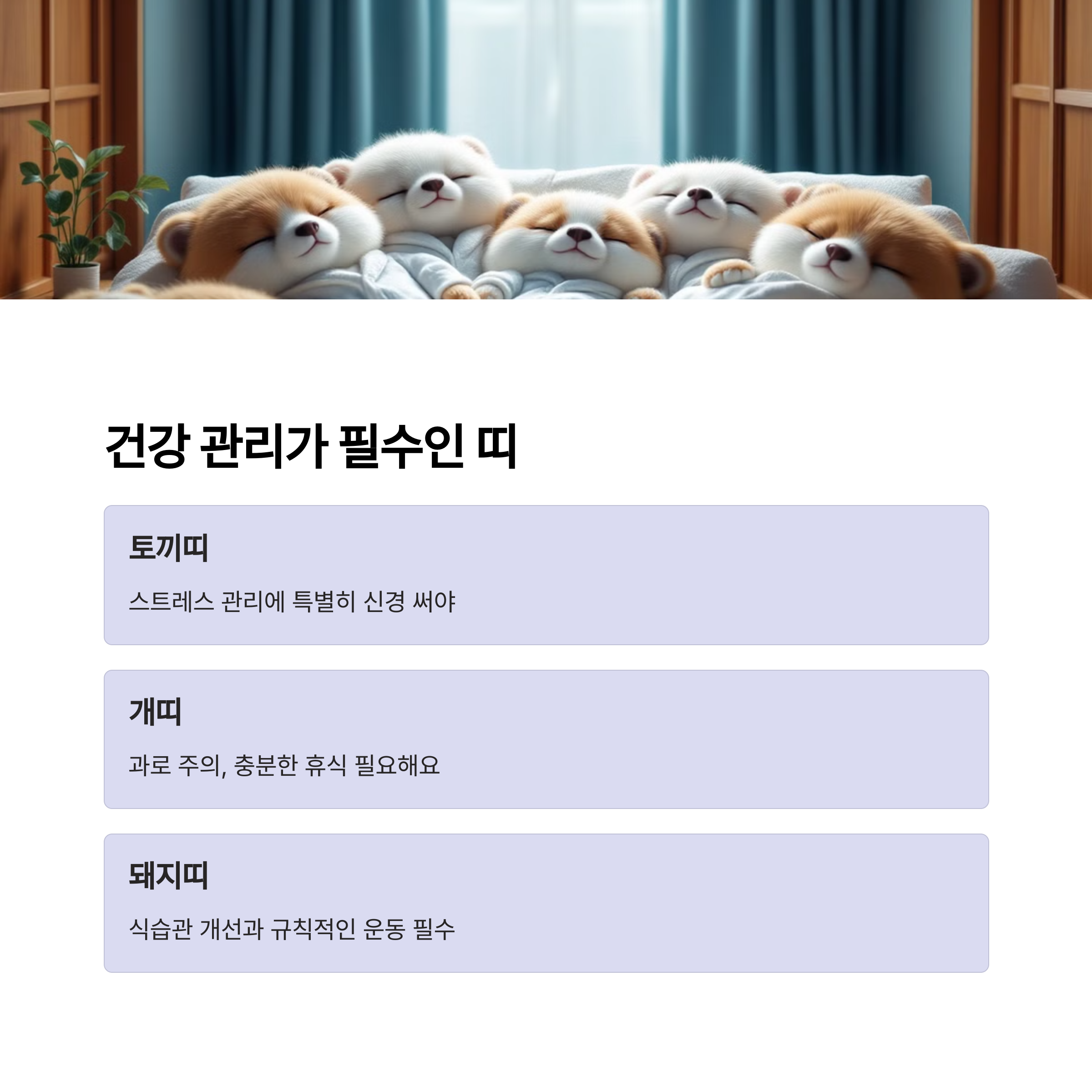 띠별 건강운을 미리 알고 대비하면 **더 건강한 한 해를 보낼 수 있어요!** 💪