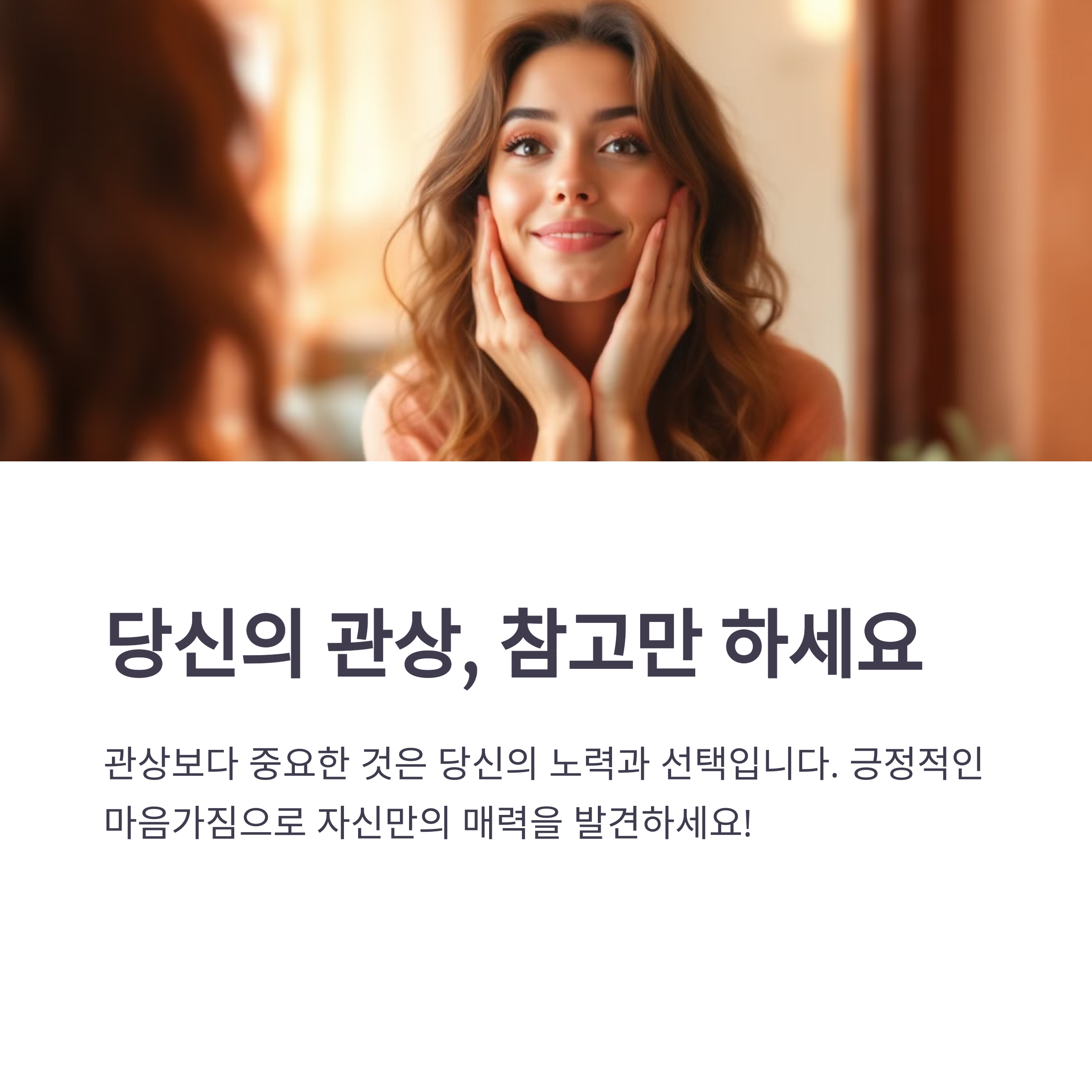 관상은 타고난 요소도 있지만, **후천적인 노력으로 더 좋은 관상을 만들 수 있어요!** 😊 얼굴의 표정, 피부 상태, 이목구비의 균형 등을 관리하면 좋은 기운을 끌어올릴 수 있어요.
