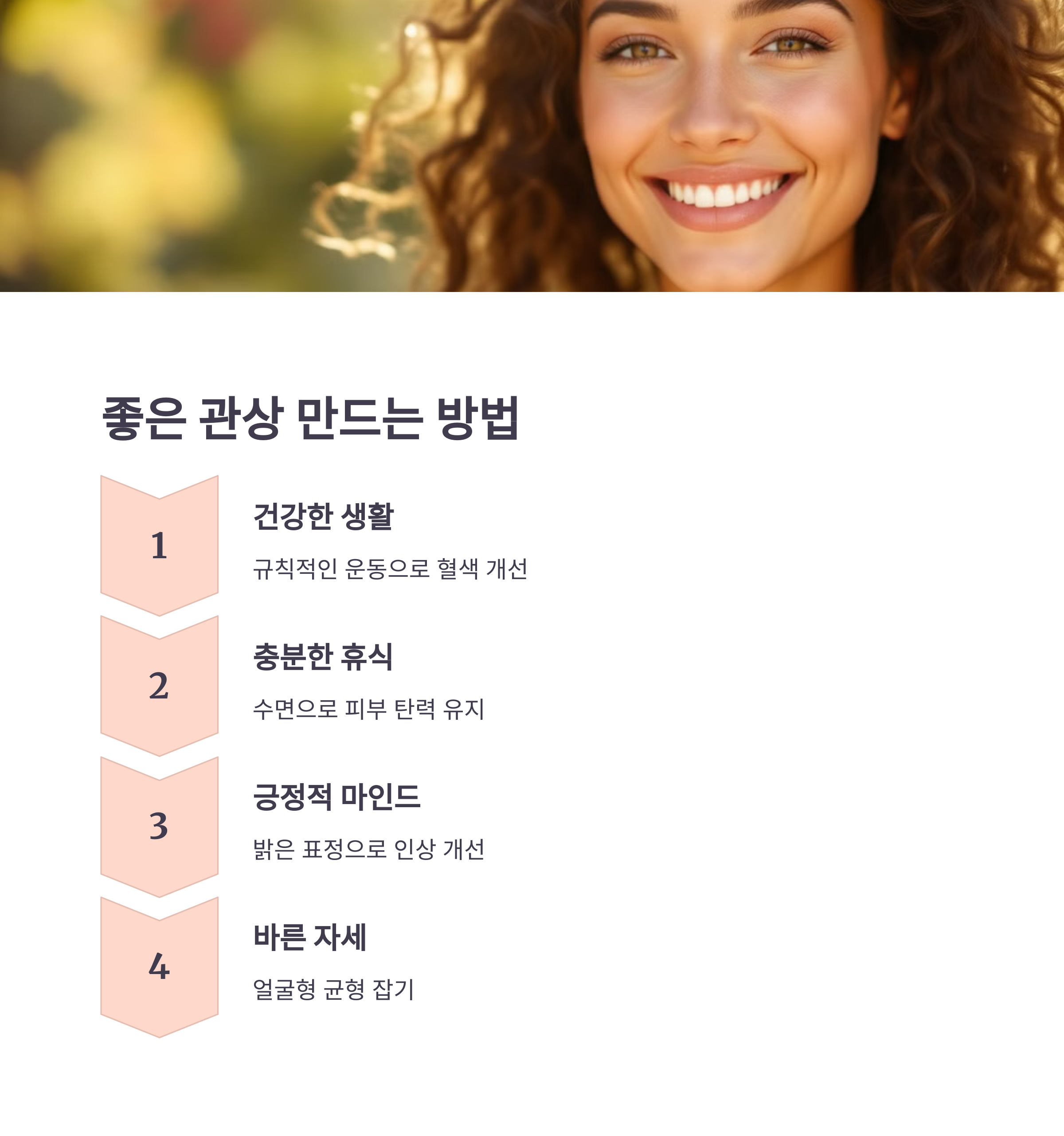 특히 **맑고 건강한 얼굴빛, 긍정적인 표정, 자신감 있는 태도** 가 좋은 관상을 만드는 중요한 요소예요.
